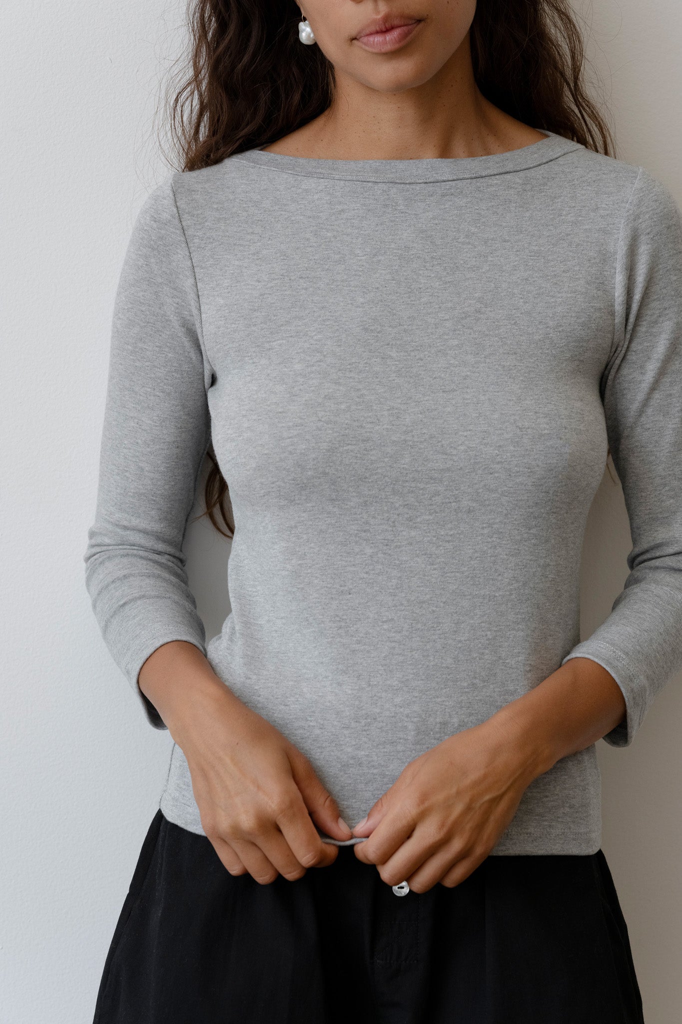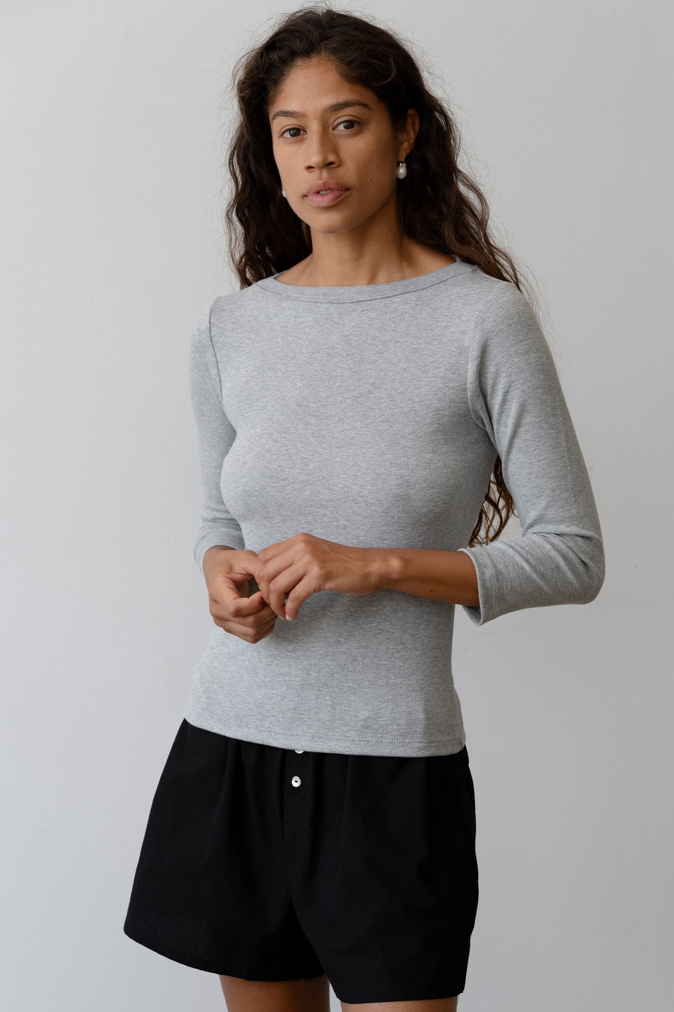 The Baby Rib Boatneck is crafted from our butter-soft Baby Rib fabric. Featuring, 3/4 length sleeves, a boatneck, and full length fit.