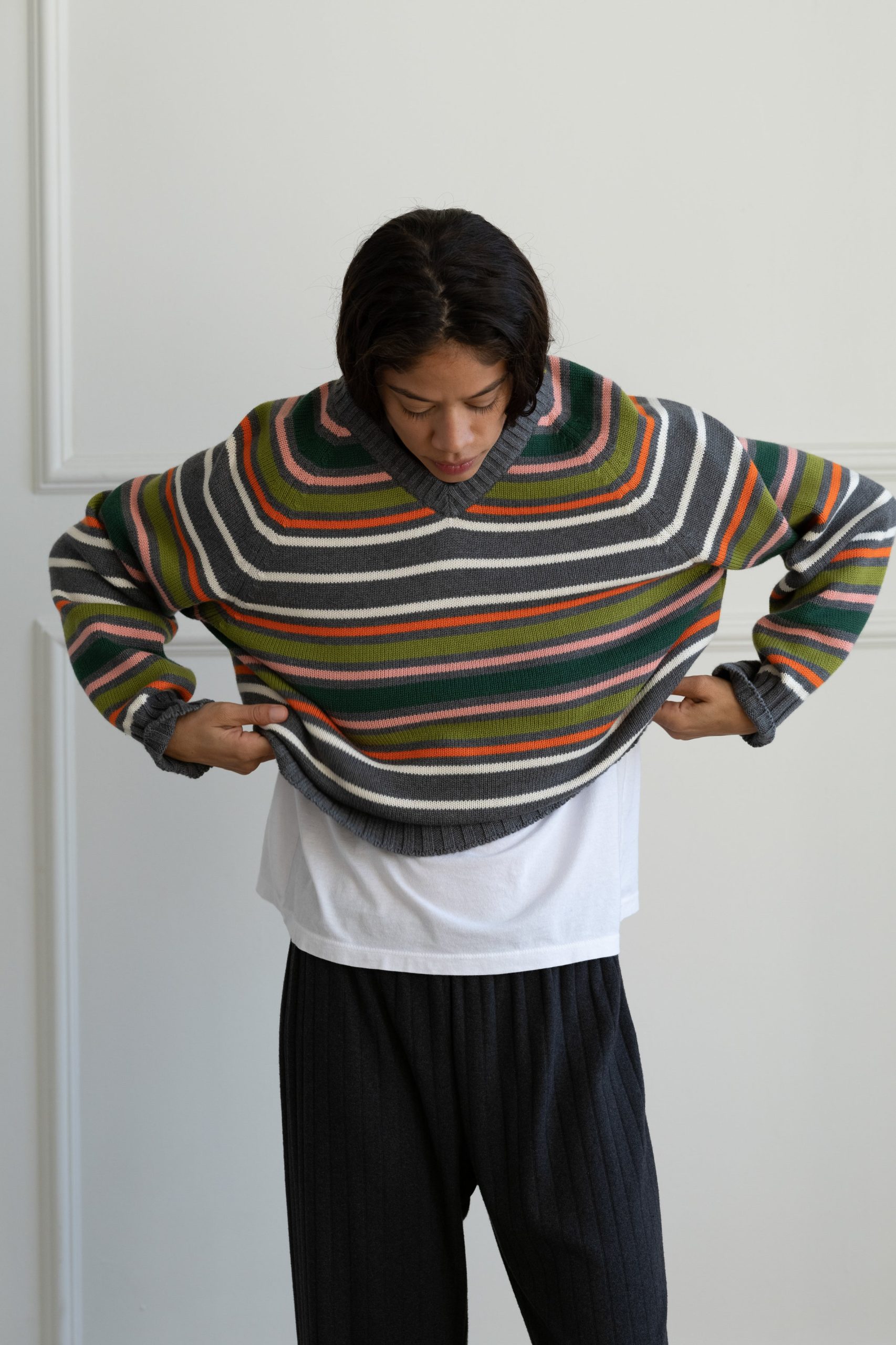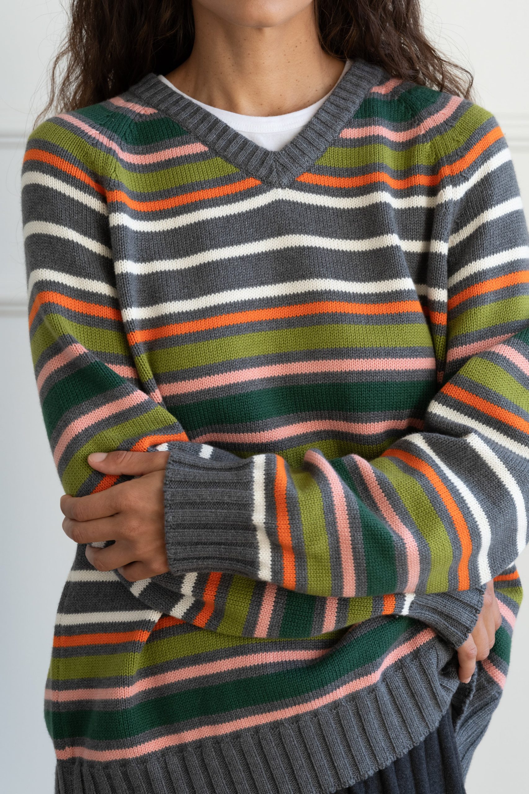 Be the first to review “Donni Women’s The Cotton Cashmere Stripe V-neck Sweater | Charcoal-grey-stripe” Cancel reply