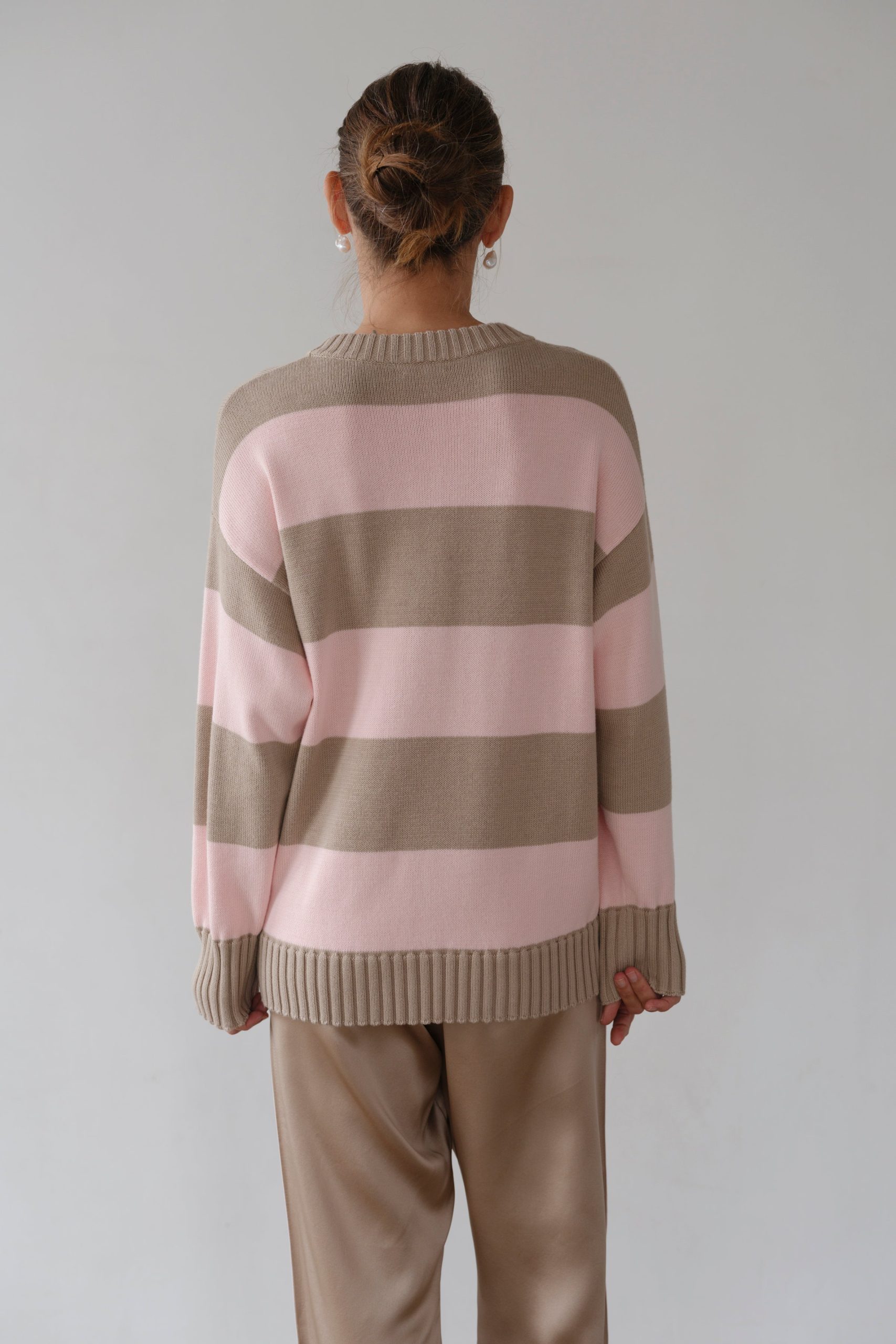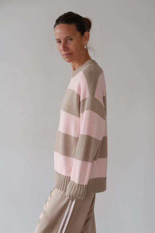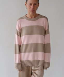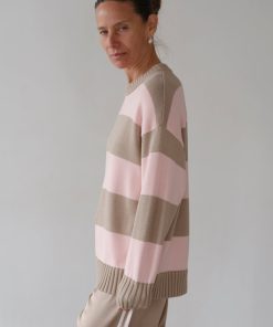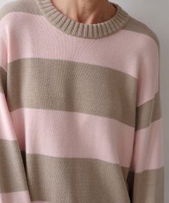 Donni Women’s The Cotton Knit Stripe Crewneck Sweater | Shitake-ballerina