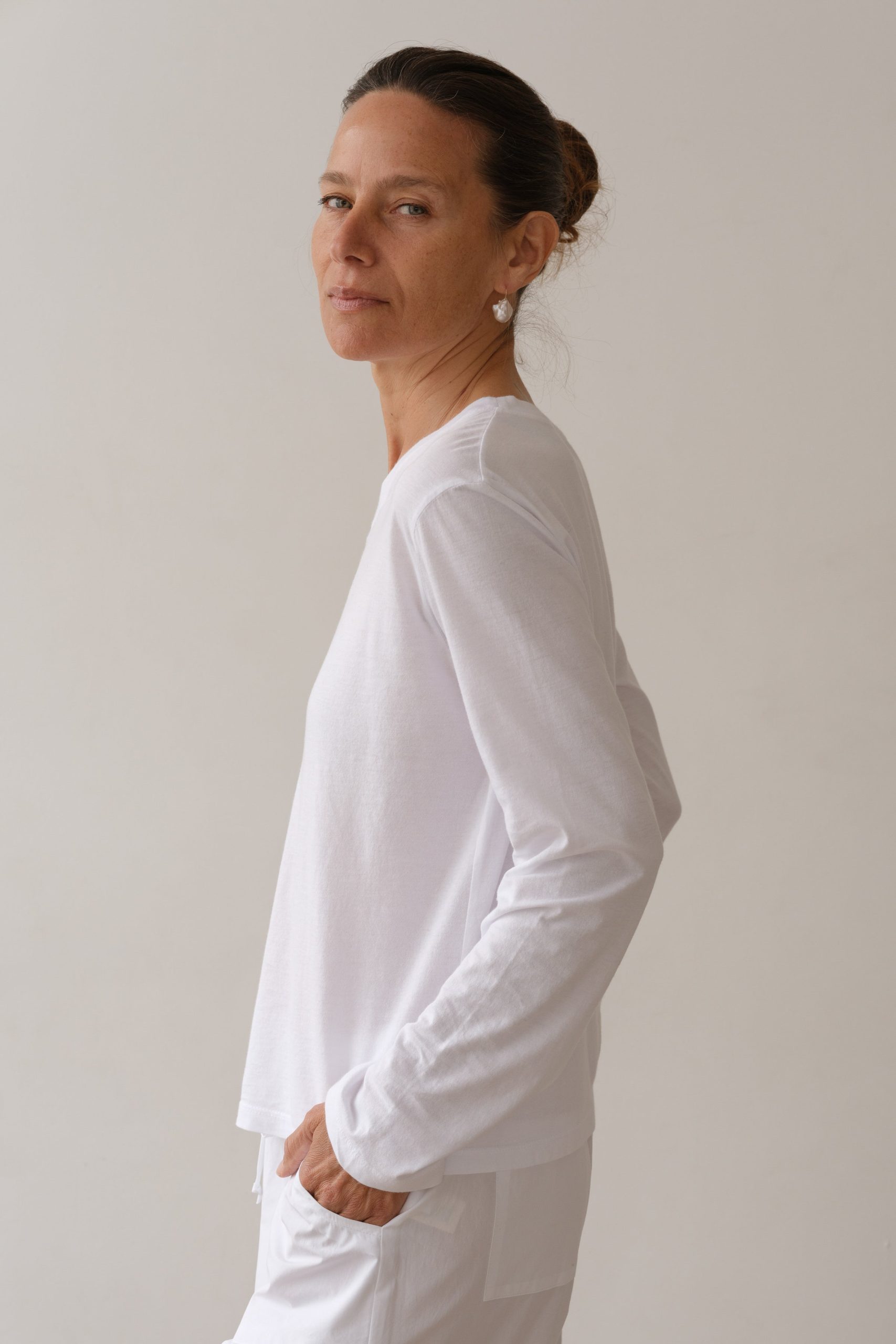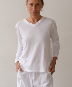 The Jersey V-Neck Long Sleeve is crafted from our signature cotton jersey for a soft, lightweight feel. Designed with a relaxed fit and classic v-neck, it's an effortless essential for everyday wear.