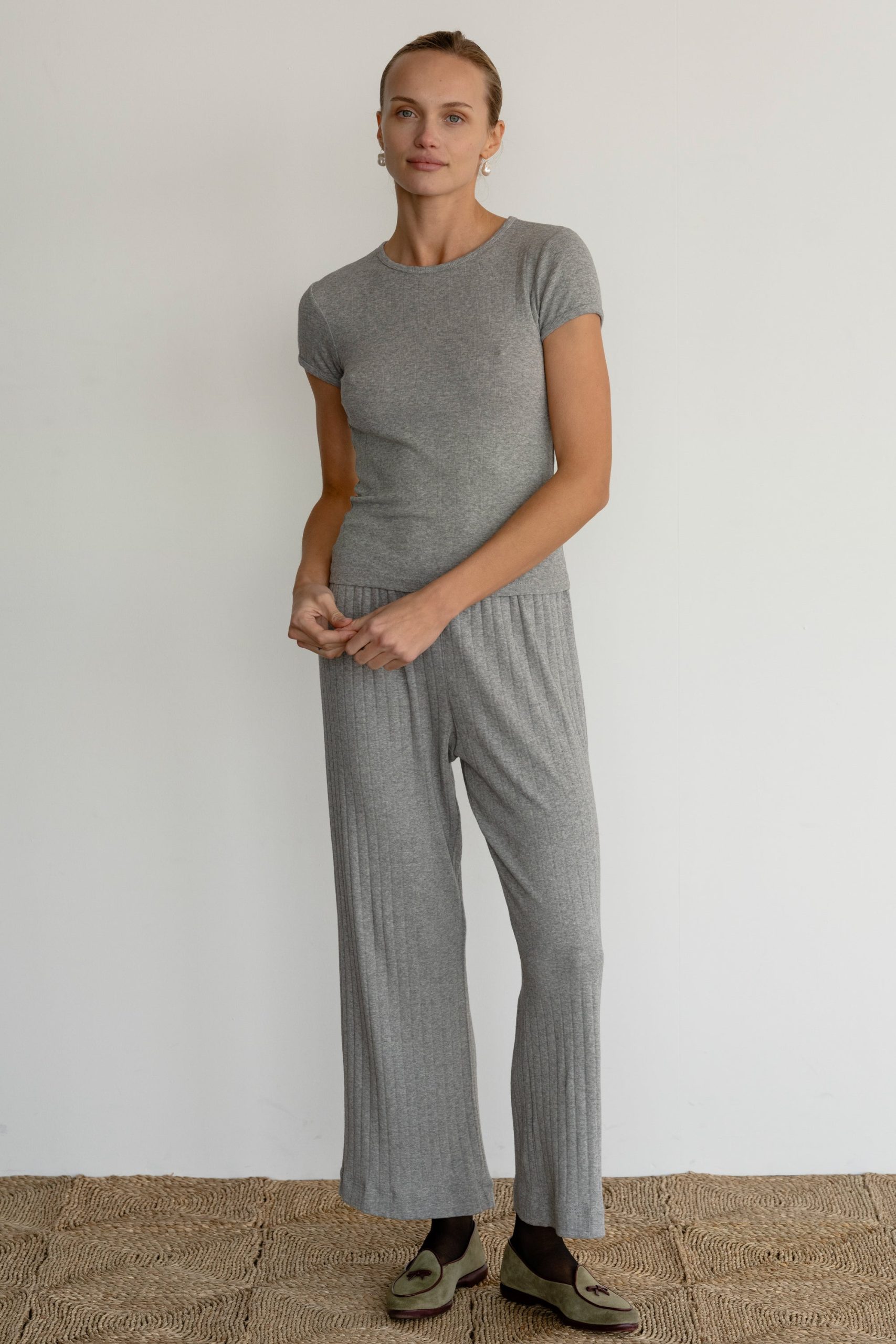 The Pointelle Baby Tee is crafted with 100% Organic Cotton, featuring a slim-fit, crewneck, and cap sleeves.