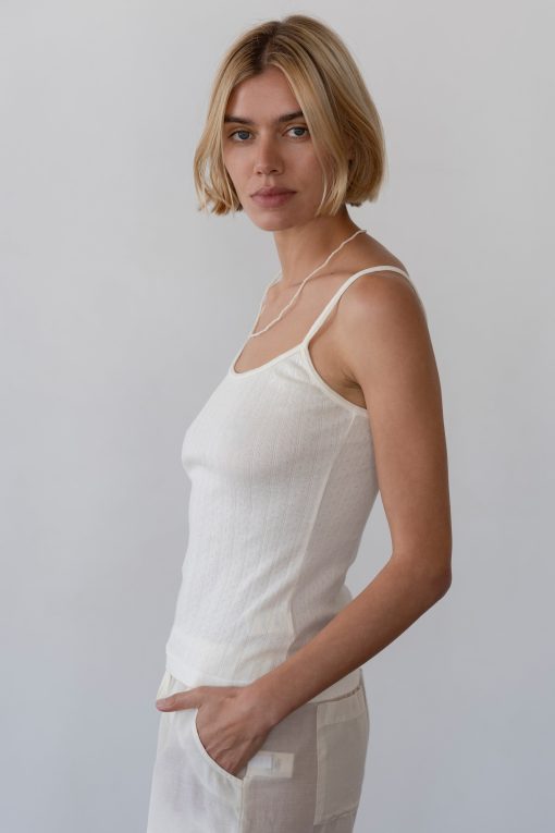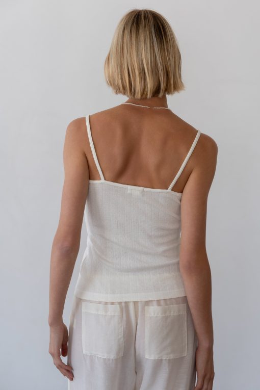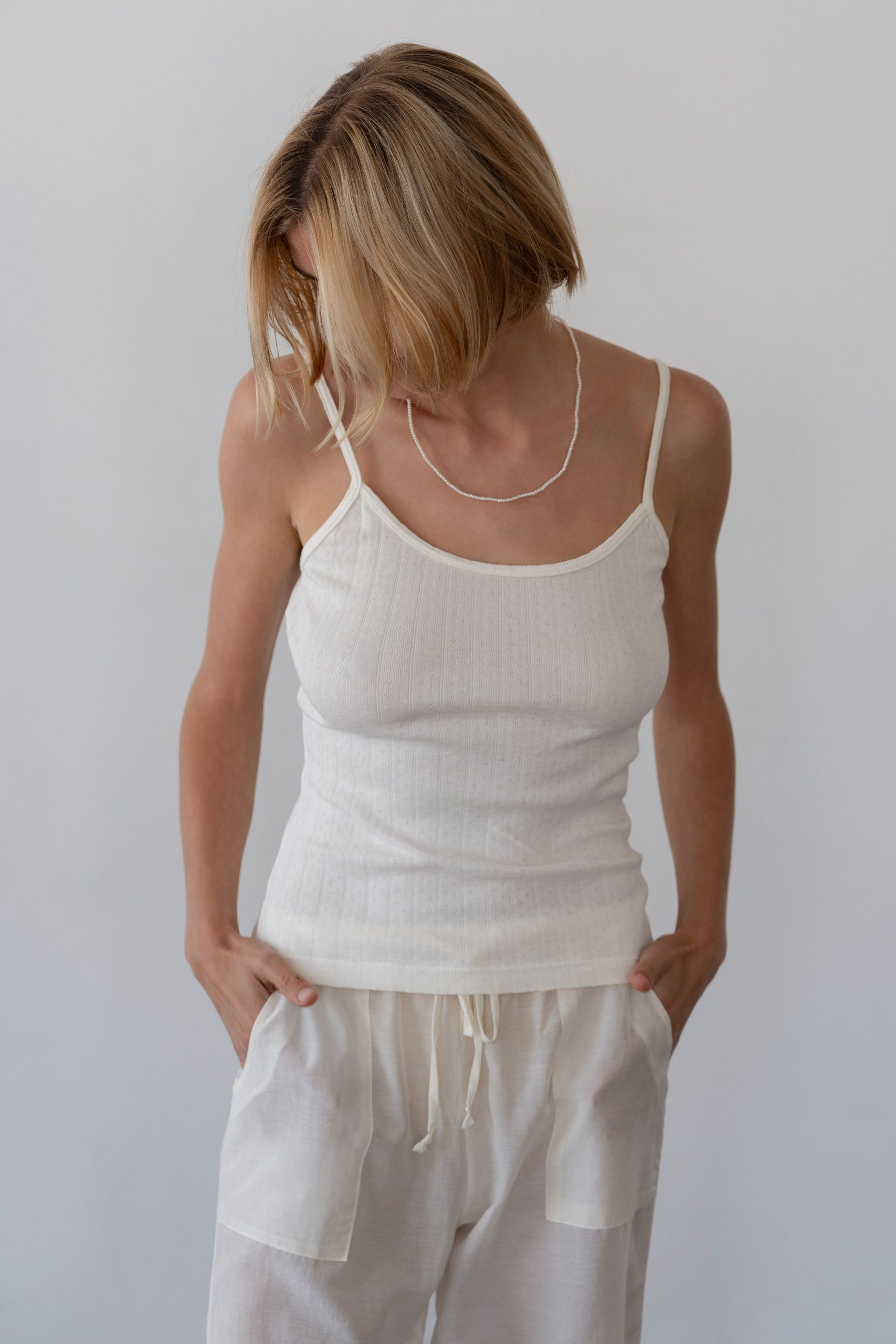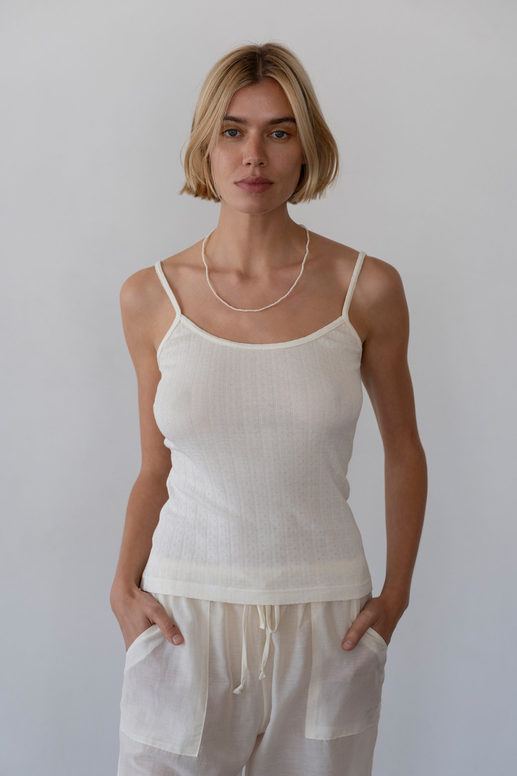 The Pointelle Cami Tank is crafted from our signature 100% organic cotton, offering a super-soft feel and an easy, true-to-size fit.