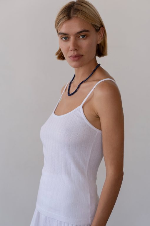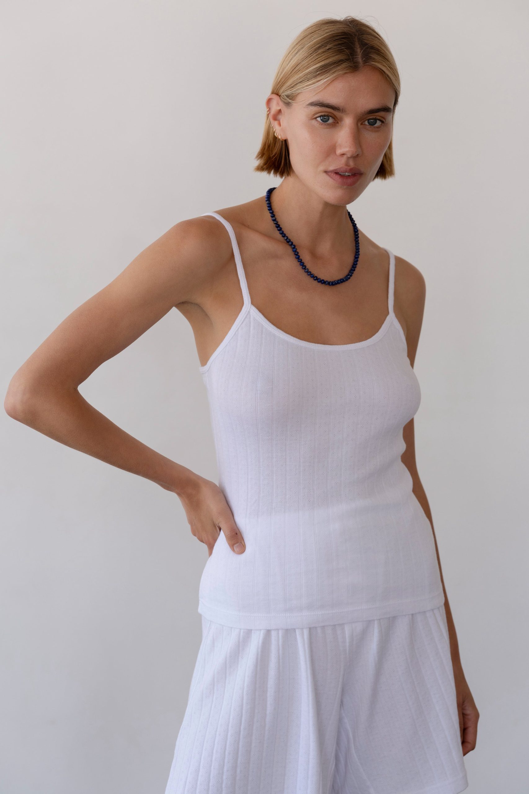 The Pointelle Cami Tank is crafted from our signature 100% organic cotton, offering a super-soft feel and an easy, true-to-size fit.
