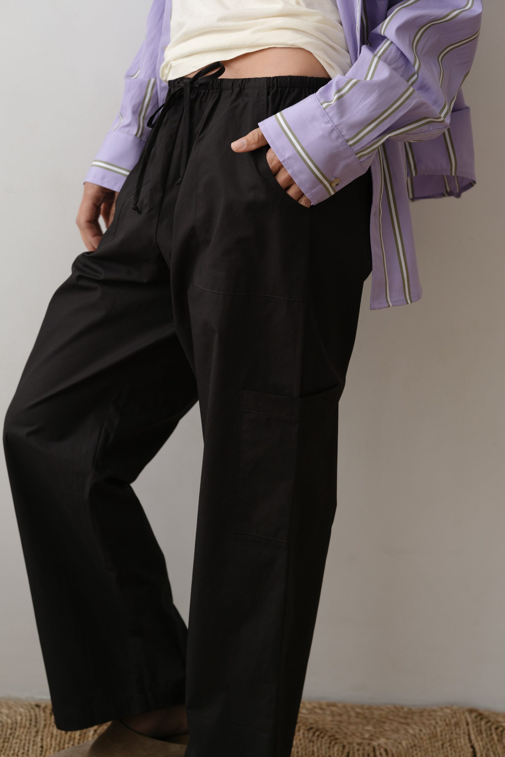 The Pop Drawstring Cargo Pant is crafted from crisp cotton poplin for a lightweight, airy feel. Featuring a drawstring waist and a slightly cropped fit, it's designed with cargo, side, and back pockets for effortless functionality. Versatile and easy to style, it's a go-to piece for any wardrobe.