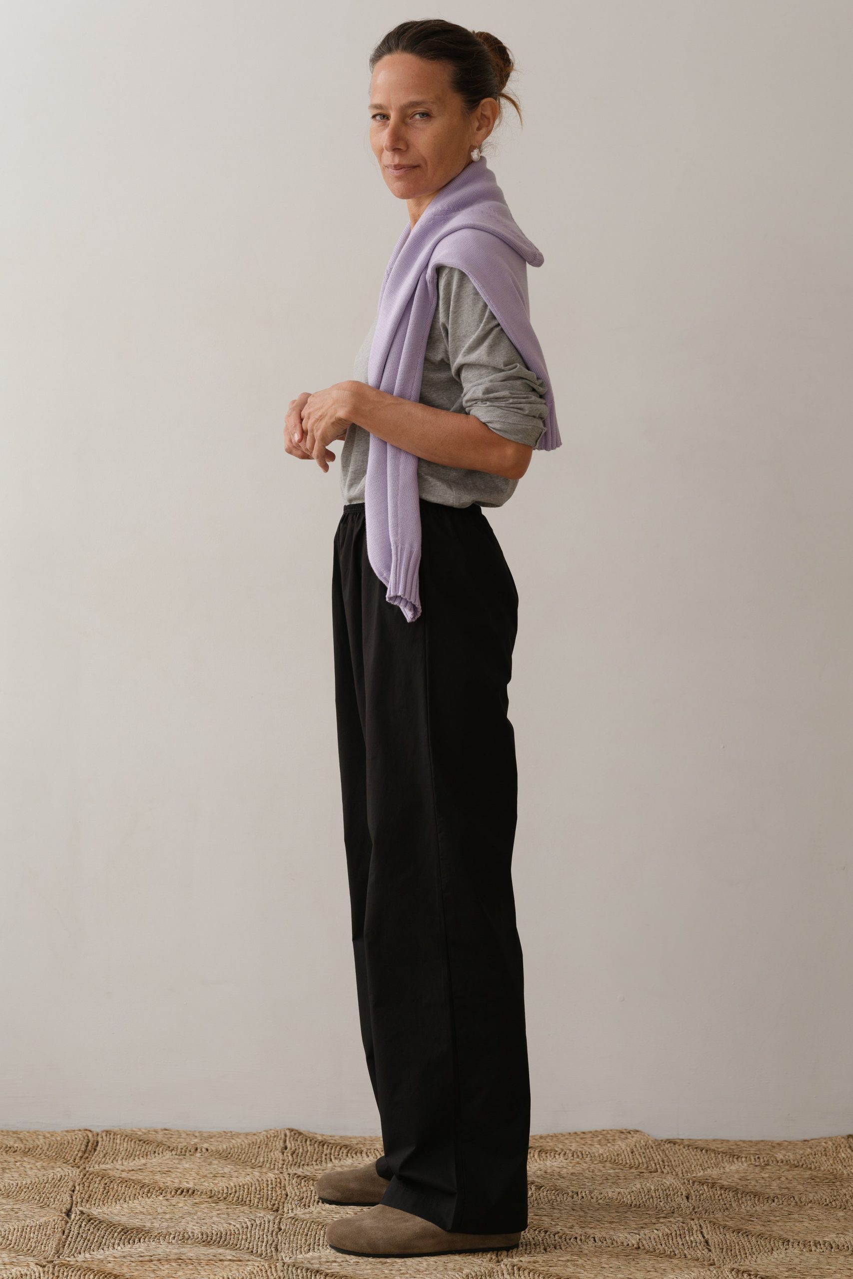 Our signature Simple Pant, reimagined in crisp cotton poplin. Designed for effortless wear, it features an elastic waistband, a straight-leg silhouette, and a full-length fit—combining comfort with an easy, polished look.