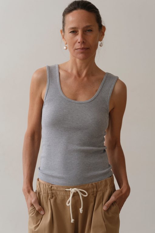 Donni Women’s The Rib Scoop Tank | Heather-grey