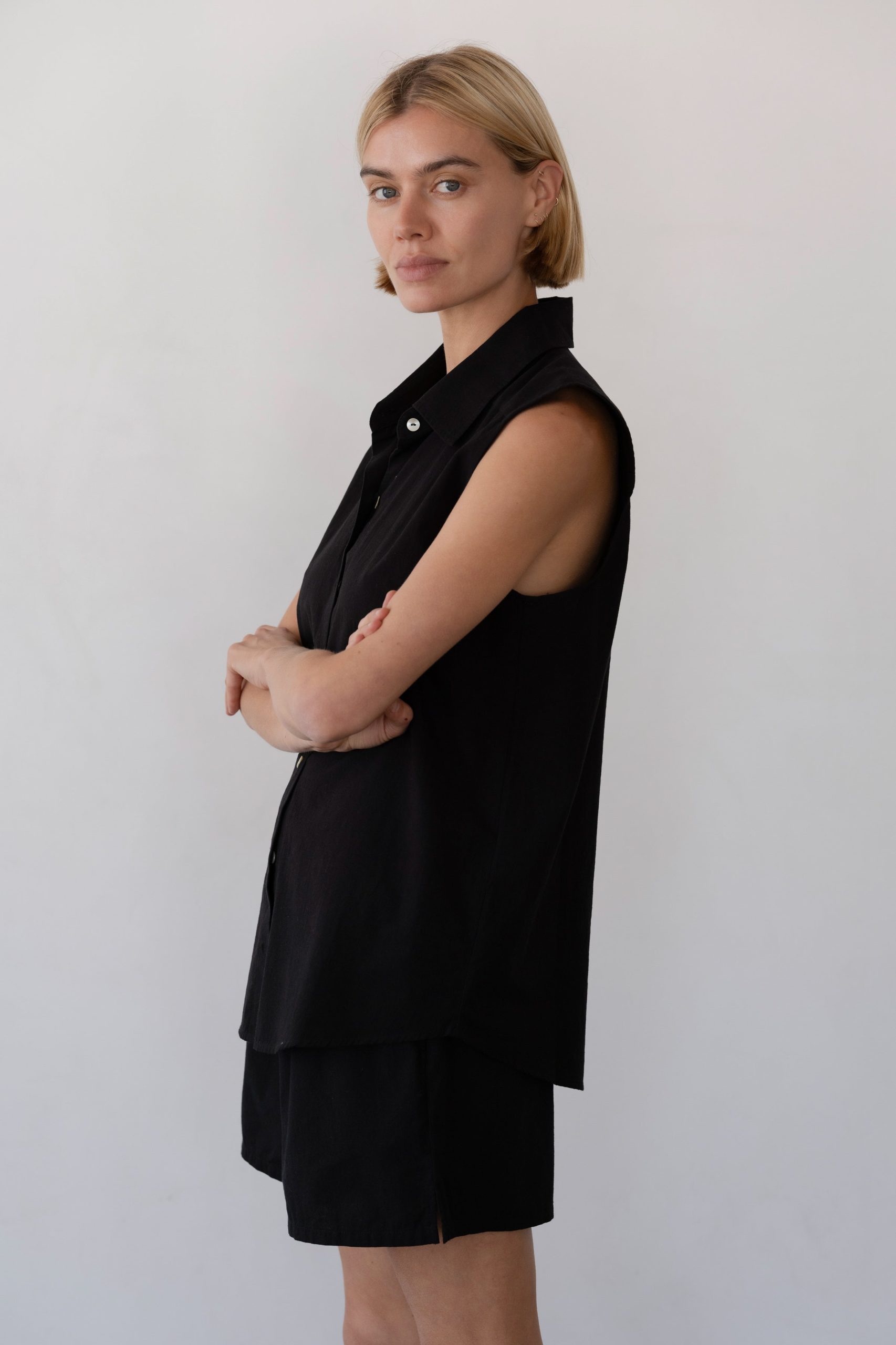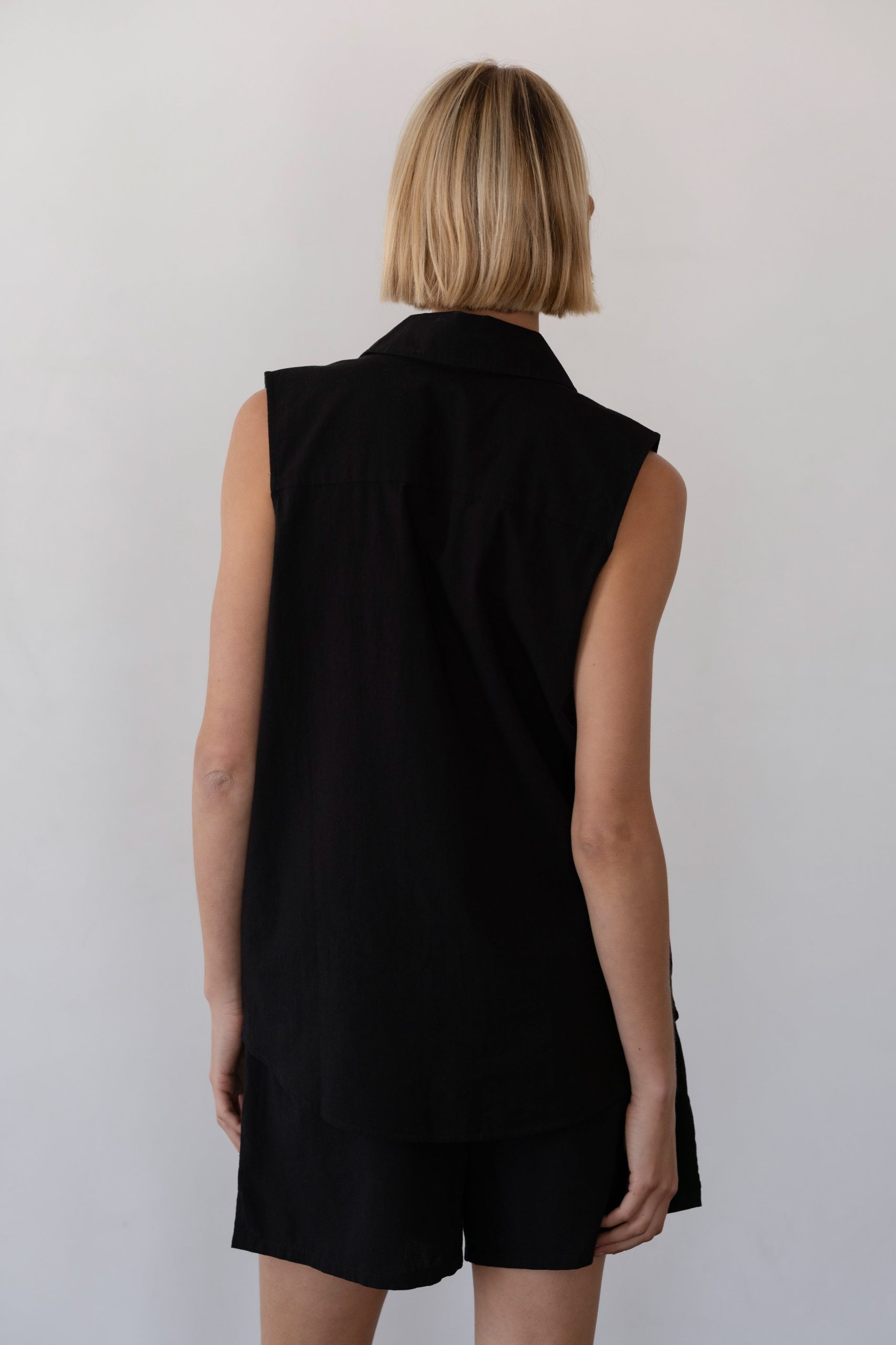 Donni Women’s The Sandwash Sleeveless Shirt | Jet