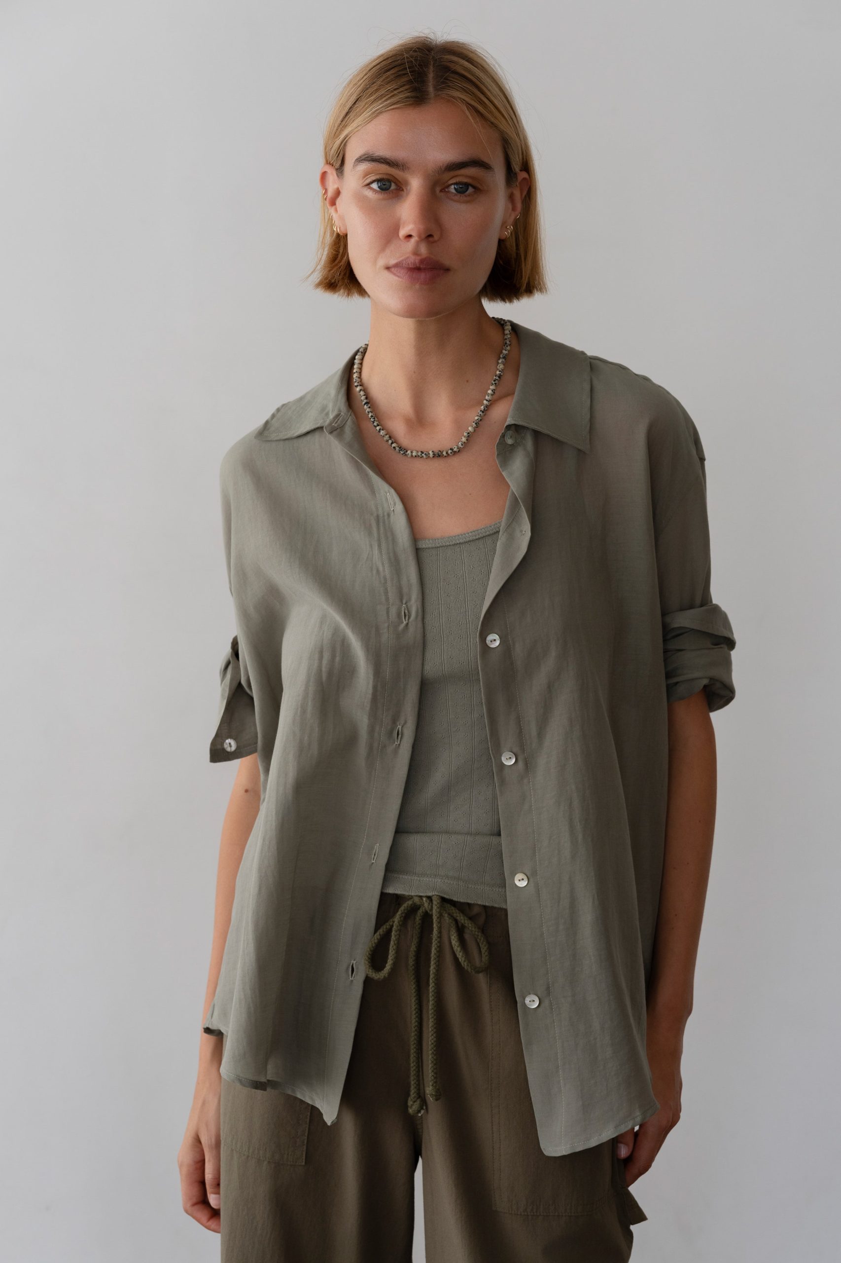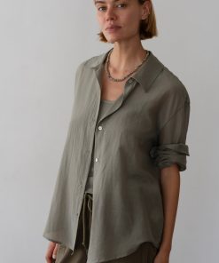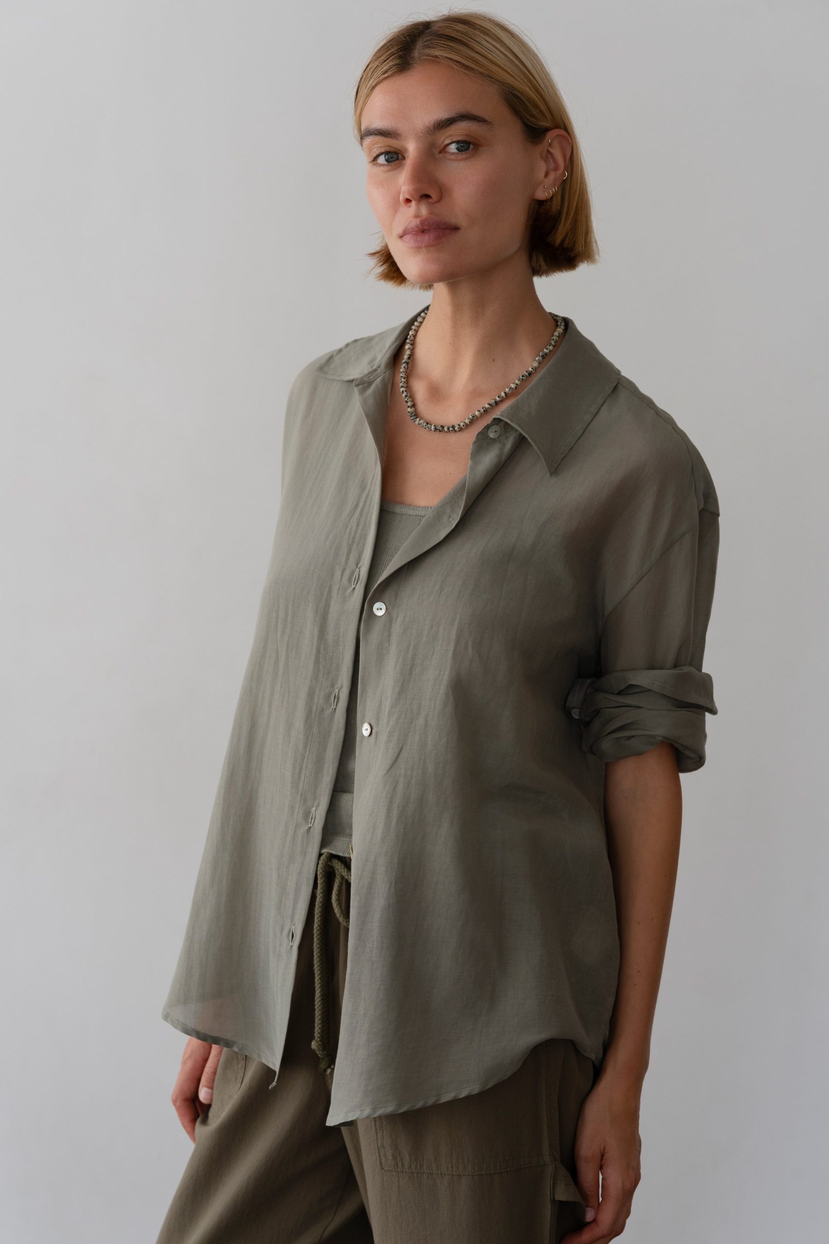 Be the first to review “Donni Women’s The Silk Cotton Sheer Shirt | Dill” Cancel reply