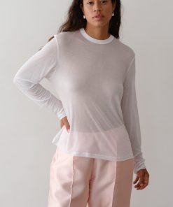 The Silk Jersey Long Sleeve is crafted from a luxe silk blend. Featuring a sheer finish, relaxed fit, and solid neckline. Perfect for layering or wearing on it's own.