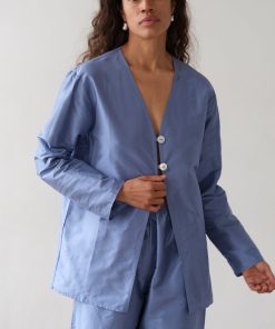 Be the first to review “Donni Women’s The Taffeta Split Top | Cornflower” Cancel reply