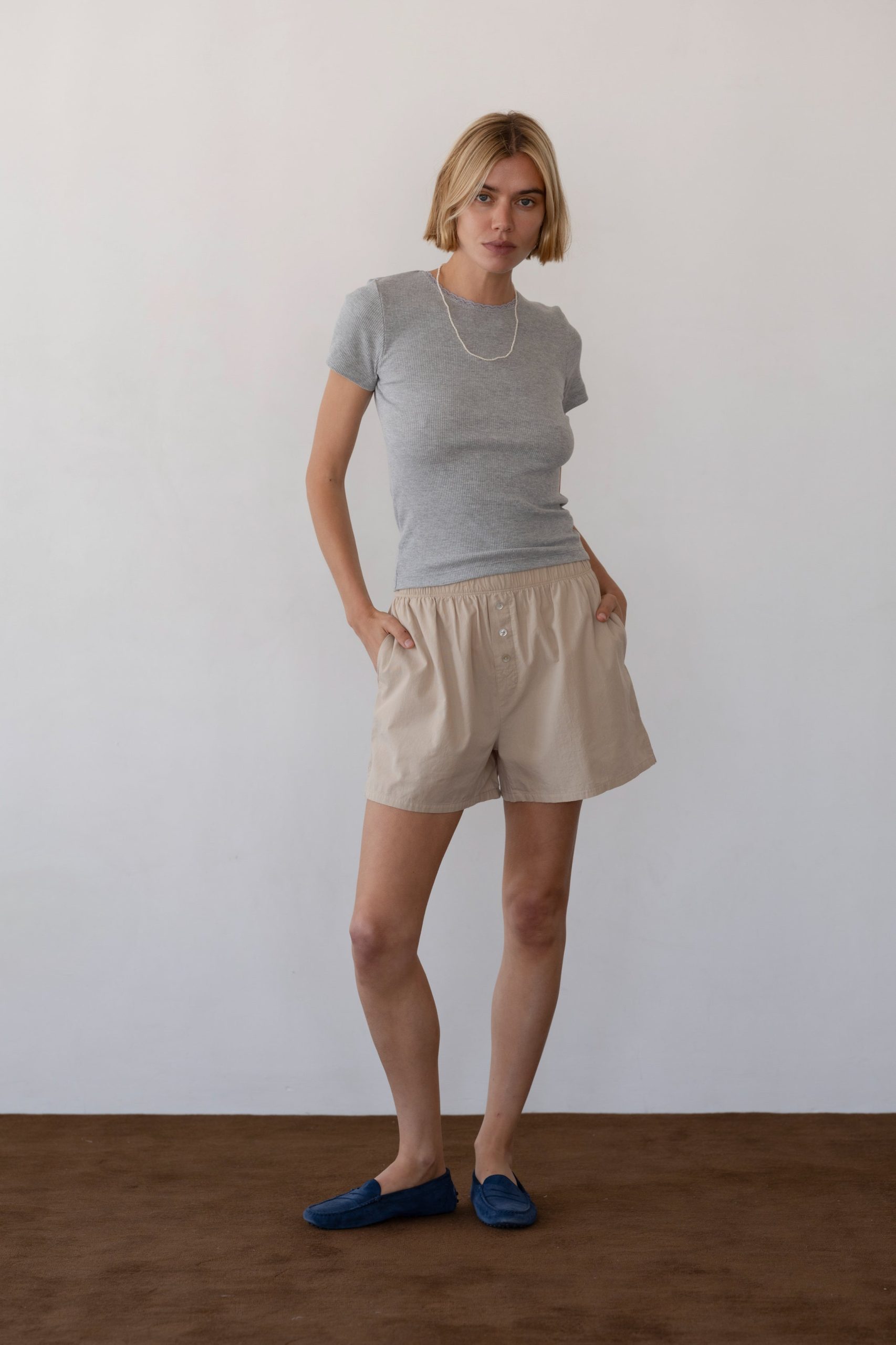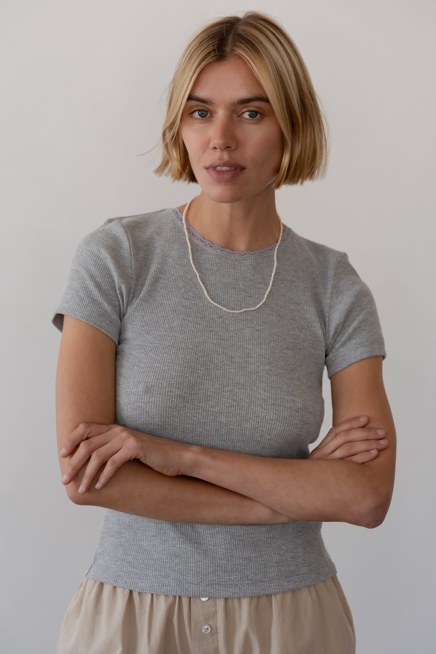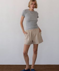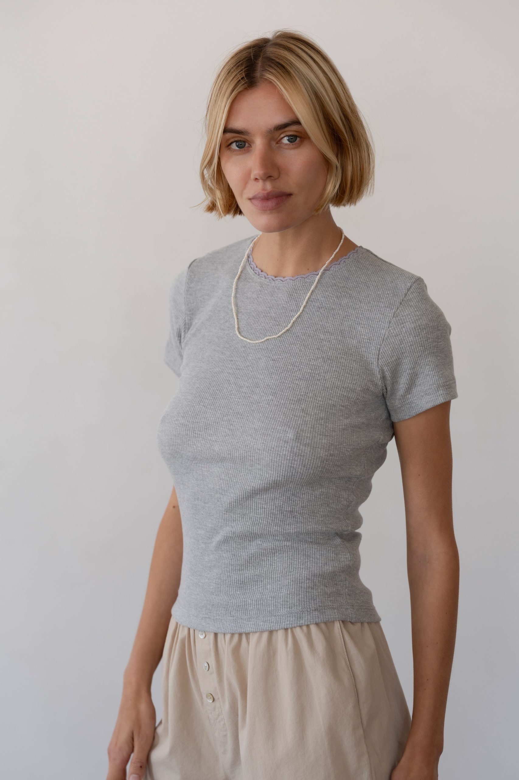 The Vintage Rib Lace Tee is crafted from 100% cotton and features ultrasoft micro ribbing, lace-trimmed edges, and a true-to-size fit for easy everyday wear.